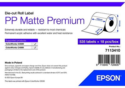 EPSON Premium Matte Label - Die-cut Roll: 102mm x 51mm, 2310 labels