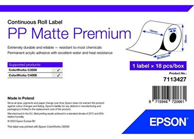 PP Matte Label Premium, Cont. Roll, 76mm x 29mm