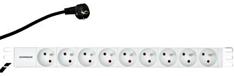 Napájecí panel PDU 19", 9x ČSN, 1U, kabel 2 m