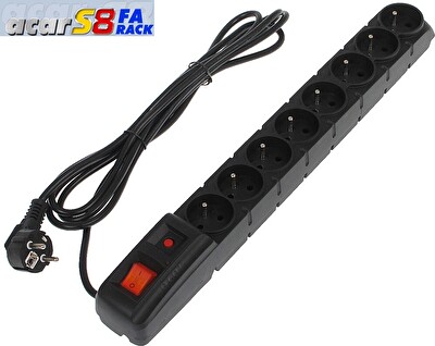 19" napáj.panel ACAR S8/3m 8x220V Black+přep.ochr.10A