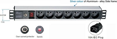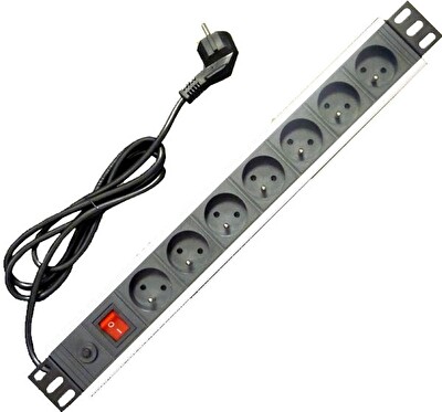 19" rozvodný panel 1,5U ,7x220V, koncovka IEC C19,16A