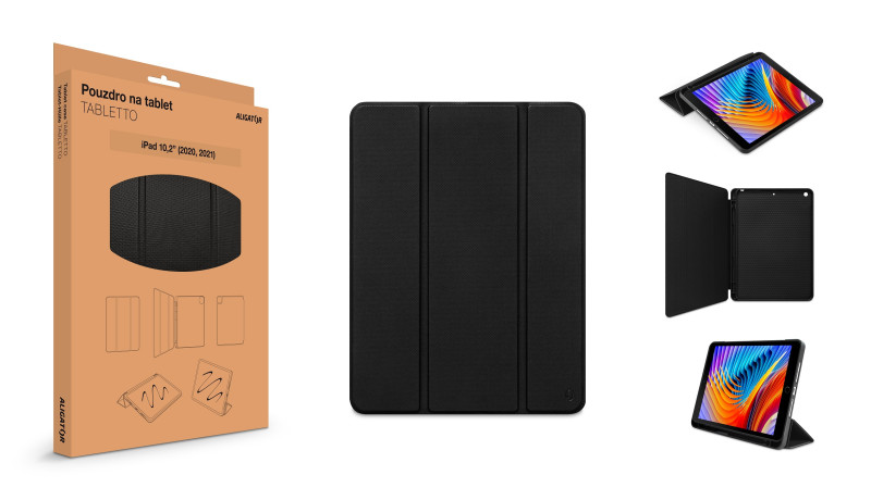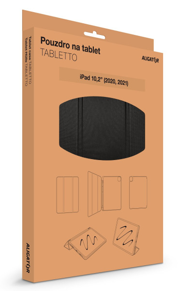 Dedikované polohovatelné pouzdro TABLETTO pro iPad 10,2" (2020, 2021) značky ALIGATOR. Dokonale propracovaný design, tenké a ohebné provedení s maximální možnou ochrannou. Prostor pro umístění Apple Pencil, zavírání pomocí integrovaného magnetu, snadné uchycení iPadu pomocí silikonové vaničky a možnost složení pouzdra do tvaru stojánku. Design je navržen tak, že oproti běžným zavíracím pouzdrům chrání Váš iPad po celém obvodu a zároveň ho enormně nezvětšuje. Protiskluzové TPU provedení s povrchovou úpravou je reprezentativním doplňkem, přičemž nebylo opomenuto na efektivní ochranu vloženého iPadu. Polstrovaná podšívka, příjemná na omak, přispívá k ochraně displeje, stejně jako důmyslně zpracovaná silikonová vanička, která zároveň skvěle fixuje Váš iPad. Součástí silikonové vaničky je prostor pro umístění Apple Pencil nebo jakéhokoliv jiného stylusu/dotykového pera podobných rozměrů. Přední odklápěcí strana je vybavena skrytým magnetickým zavíráním s funkcí automatického sepnutí displeje. Pouzdro Aligator TABLETTO je skvělým doplňkem pro každodenní používání doma i na cestách. Součástí pouzdra je i praktický stojánek, díky němuž můžete pohodlně a bez držení v ruce sledovat videa, prohlížet fotografie a mnoho dalšího. Pouzdro TABLETTO je stvořené pro Váš iPad, je stylovým doplňkem a zároveň perfektní ochrannou. *Dedikované pouzdro pro iPad 10,2" (2020, 2021) *Zavírání pomocí skrytého magnetu *Automatické sepnutí displeje *Přihrádka pro Apple Pencil *Funkce rychlého stojánku *Ochrana iPadu po celém obvodu *Elefantní a funkční design *Protiskluzová povrchová úprava *Snadné uchycení iPadu pomocí silikonové vaničky *Barevné provedení: Černá