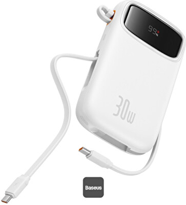 Baseus power banka Qpow 10000mAh 30W bílá s USB-C kabelem