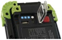 Na jeho zadní straně najdete malé odklápěcí okénko, pod kterým jsou bezpečně ukryté 2 USB porty. Pomocí toho menšího (USB-B) reflektor dobíjíte, ten větší (USB-A) vám naopak umožňuje nastřádanou energii dostat zase ven – třeba si z něj v případě nouze nabít mobil. O stavu nabíjení i zbývajícím množství energie v reflektoru vás průběžně informují 4 barevné LED diody.