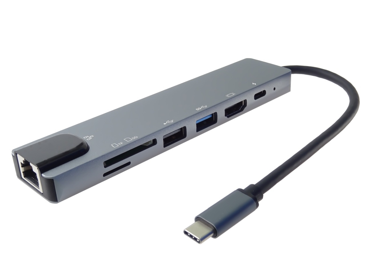 PremiumCord USB-C na HDMI + USB3.0 + USB2.0 + PD + SD/TF + RJ45 adaptér