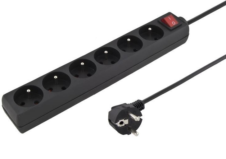 Prodlužovací přívod 230V 3m 6 zásuvek, vyp, černý