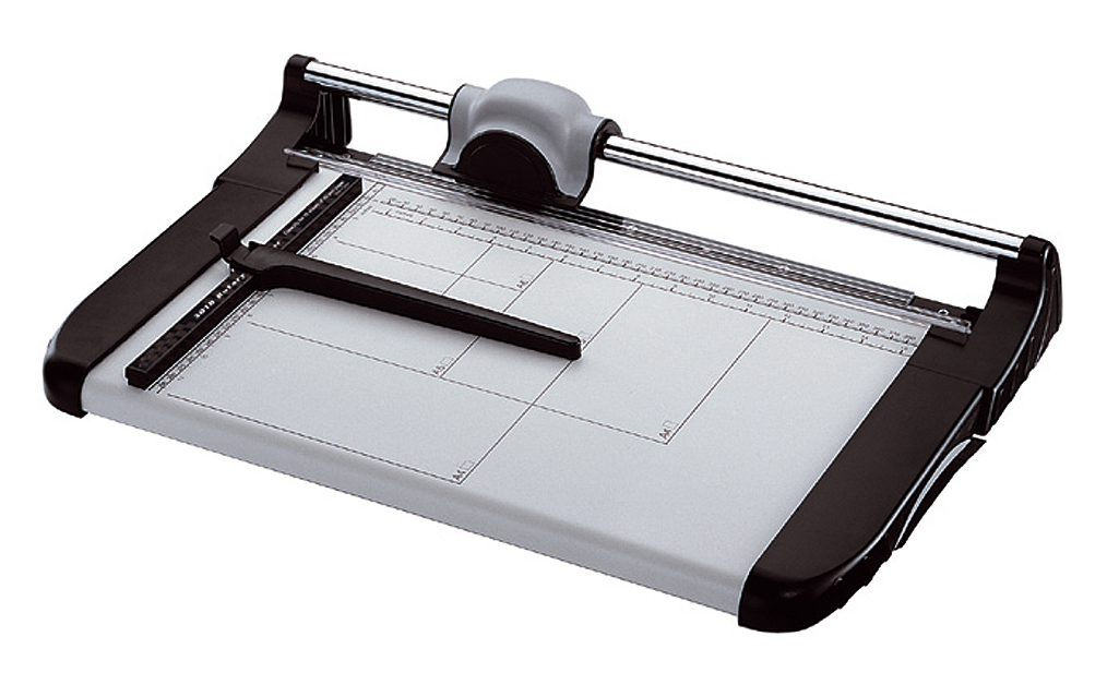 Kvalitní kolečková řezačka s pevnou kovovou základnou a řeznou hlavou umístěnou na kovové tyči, určena pro formát A4. Pracovní stůl je vybaven natištěnými měřítky a posuvnou zarážkou souběžnou s přímkou řezu. Díky rotačnímu noži z tvrzené nerezové oceli jsou řezačky KW Trio vhodné pro řezání i více listů nebo archů.