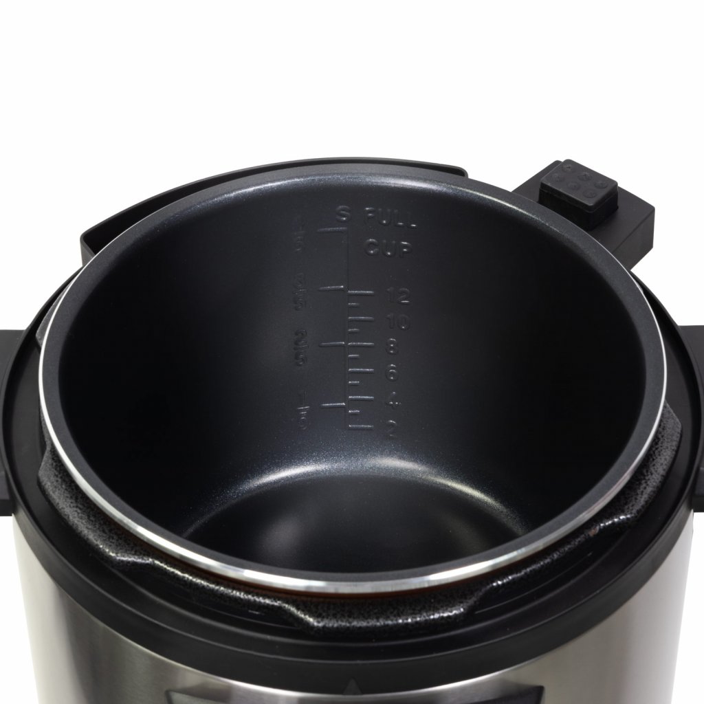• Rozměry: 35 × 33 × 33 (výška s tlakovou poklicí) cm • Hmotnost: 3,8 kg hlavní část hrnce, 0,9kg tlaková poklice, 2,1kg poklice s horkovzdušnou troubou • Napájení 230 V • Vnitřní hrnec 6l, teflonový povrch • Výkon 1200 W hrnec / 1500 W fritéza • Barevné provedení: černo-nerezové