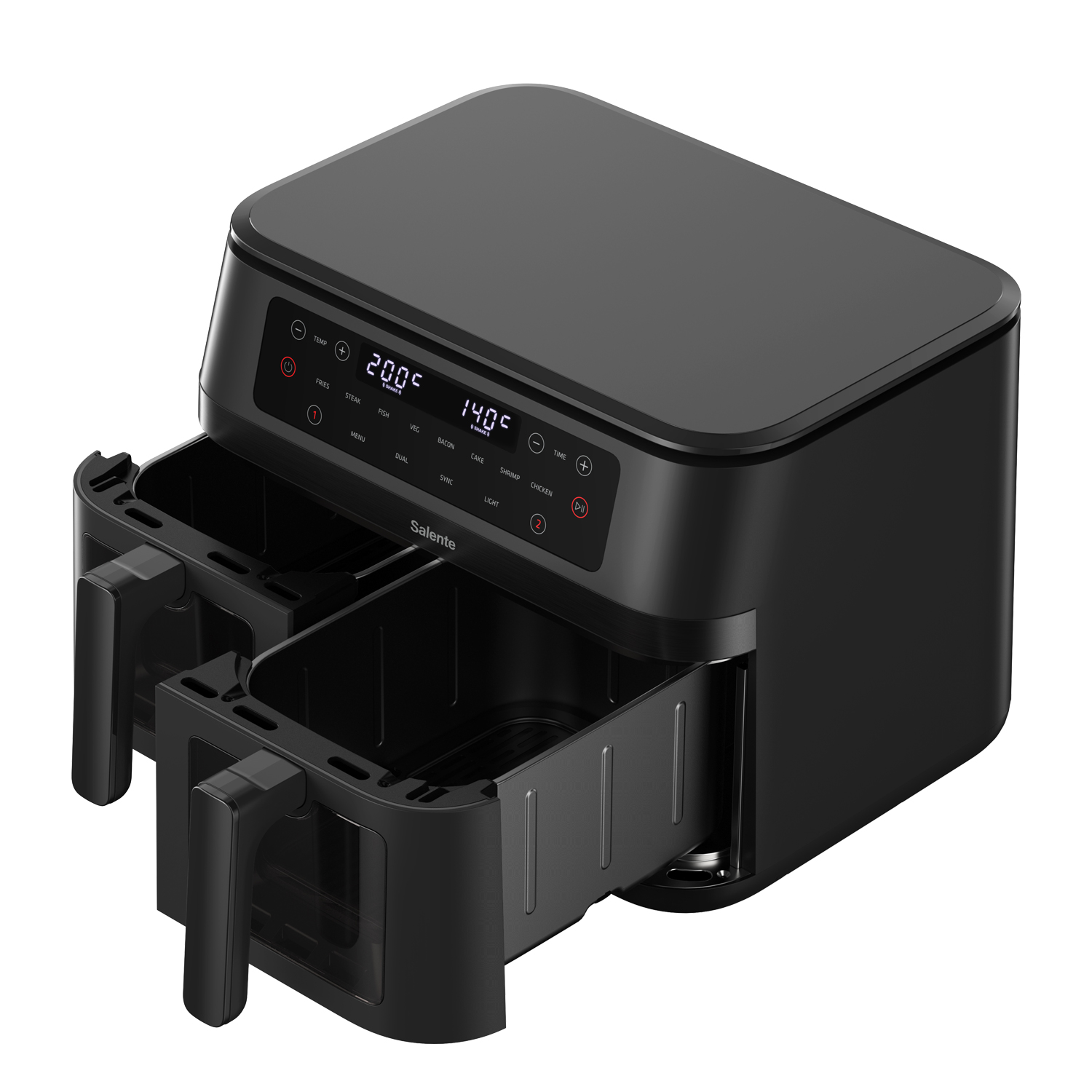K tomu, abyste v horkovzdušné fritéze připravili neodolatelné pochoutky, nemusíte být zkušenými šéfkuchaři. Salente DoubleAir totiž nabízí 8 přednastavených programů, které vás zbavují všech složitostí – prostě si vyberete typ pokrmu a přístroj vše nastaví, jak je třeba. K dispozici máte programy na hranolky, steak, rybu, zeleninu, slaninu, dezerty, krevety a kuře.