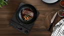 S tímto jednoplotýnkovým indukčním vařičem můžete vařit v nádobách o průměru 12 až 26 cm, přičemž přesnou velikost hrnce či pánve spotřebič rozpozná automaticky. Navíc se automaticky vypne, jakmile zvednete hrnec z plotýnky, takže nehrozí žádné plýtvání energií ani nežádoucí přehřátí (kromě toho se také vařič sám vypíná po 2 hodinách nečinnosti). Bezpečnostní prvky jsou tu ostatně opravdu promyšlené – zařízení disponuje i gumovými protiskluzovými nožičkami pro dokonalou stabilitu a pětinásobnou ochranou, která zahrnuje prvky zamezující přehřátí (varné desky i elektroniky), přepětí, podpětí i použití nevhodného nádobí.