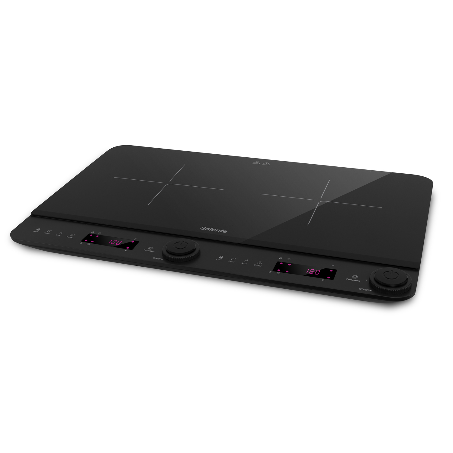 Každý pokrm vyžaduje jinou péči – někdy potřebujete jen jemné zahřívání, jindy pořádný žár. Obě plotýnky indukčního vařiče Salente InductPro2 vám proto nabízí 10 úrovní teploty (v rozsahu 60 až 240 °C) a 10 úrovní výkonu (až do 1300 W, resp. 1800 W). A pokud zrovna spěcháte, můžete se spolehnout na funkci Boost, která na 30 sekund zapne maximální výkon. Spolehlivý provoz tohoto kompaktního kuchyňského spotřebiče zajišťuje i autodiagnostika (monitorující případné problémy s indikací na displeji) nebo fakt, že ovládání i vaření je zde řízeno špičkovým mikroprocesorem.