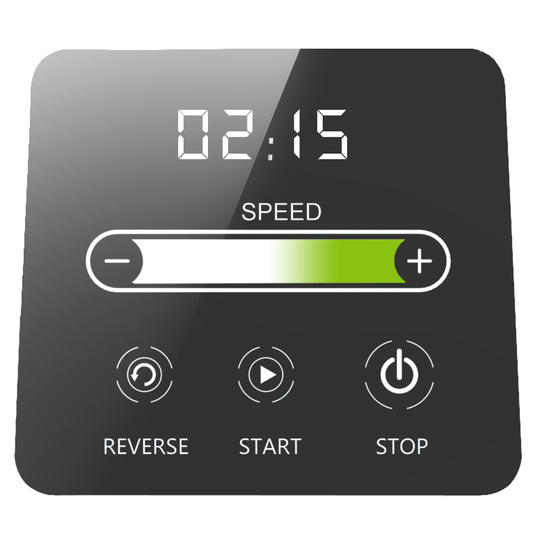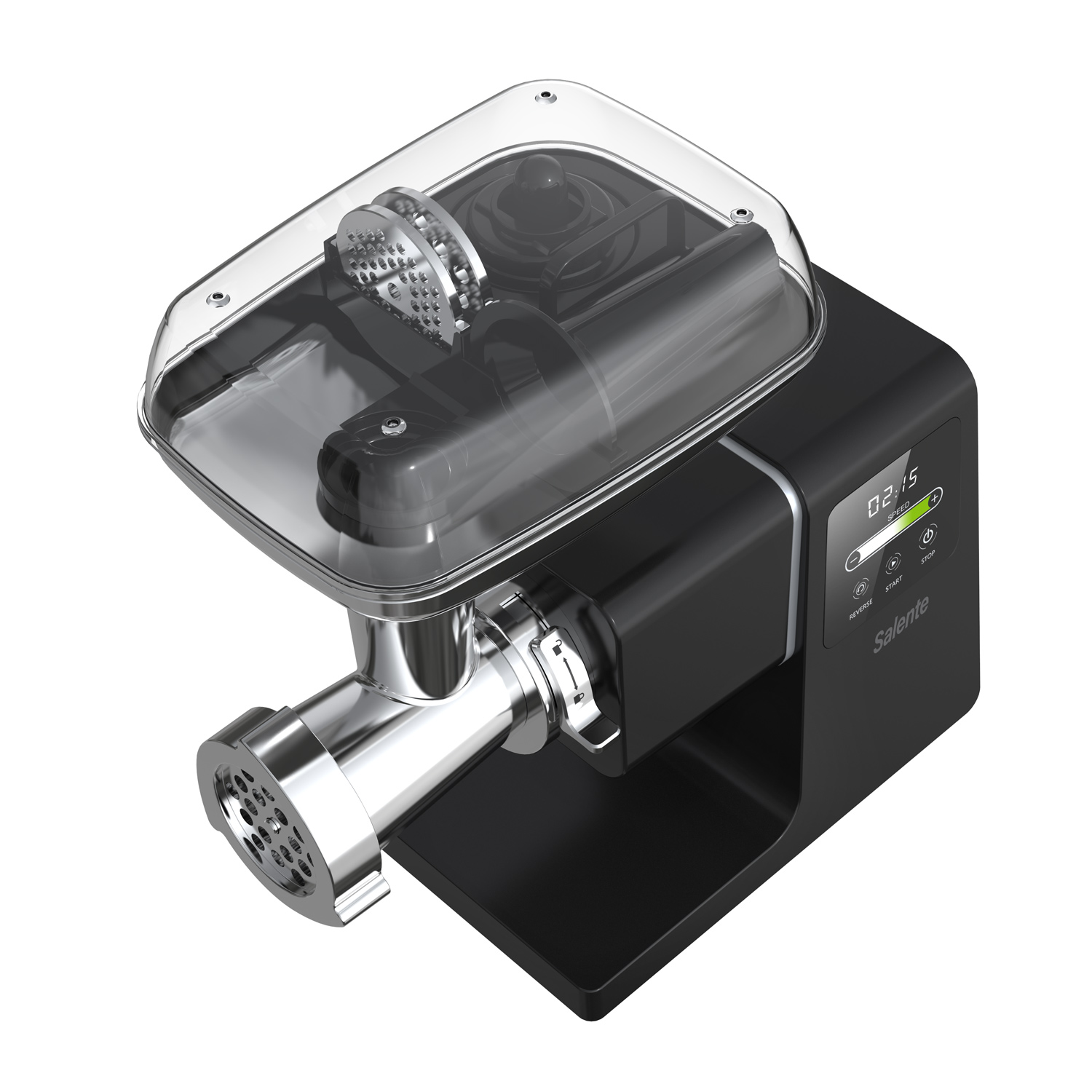 Vrcholem komfortu u masomlýnku Salente MeatPlus je dotykový digitální displej se sliderem tak, jak je znáte ze špičkových varných desek, kdy stačí prstem pouze lehce přejet doleva nebo doprava a hned se reguluje rychlost otáček. Tento způsob ovládání je nejen velmi moderní, elegantní, ale hlavně rychlý a zaručuje dlouho životnost na rozdíl od běžných mechanických ovládacích prvků. Umíte si to představit – máte ruce od masa a tuku a potřebujete rychle a spolehlivě regulovat otáčky a tím i rychlost mletí. Displej pak stačí otřít vlhkým hadříkem a je hotovo.