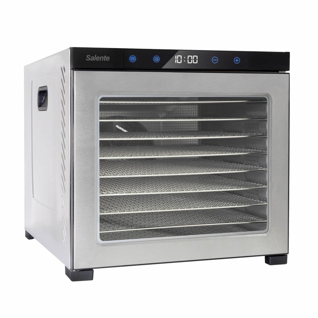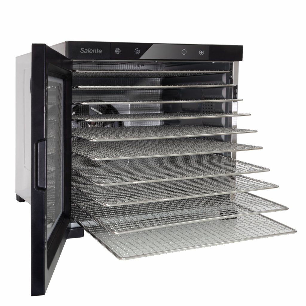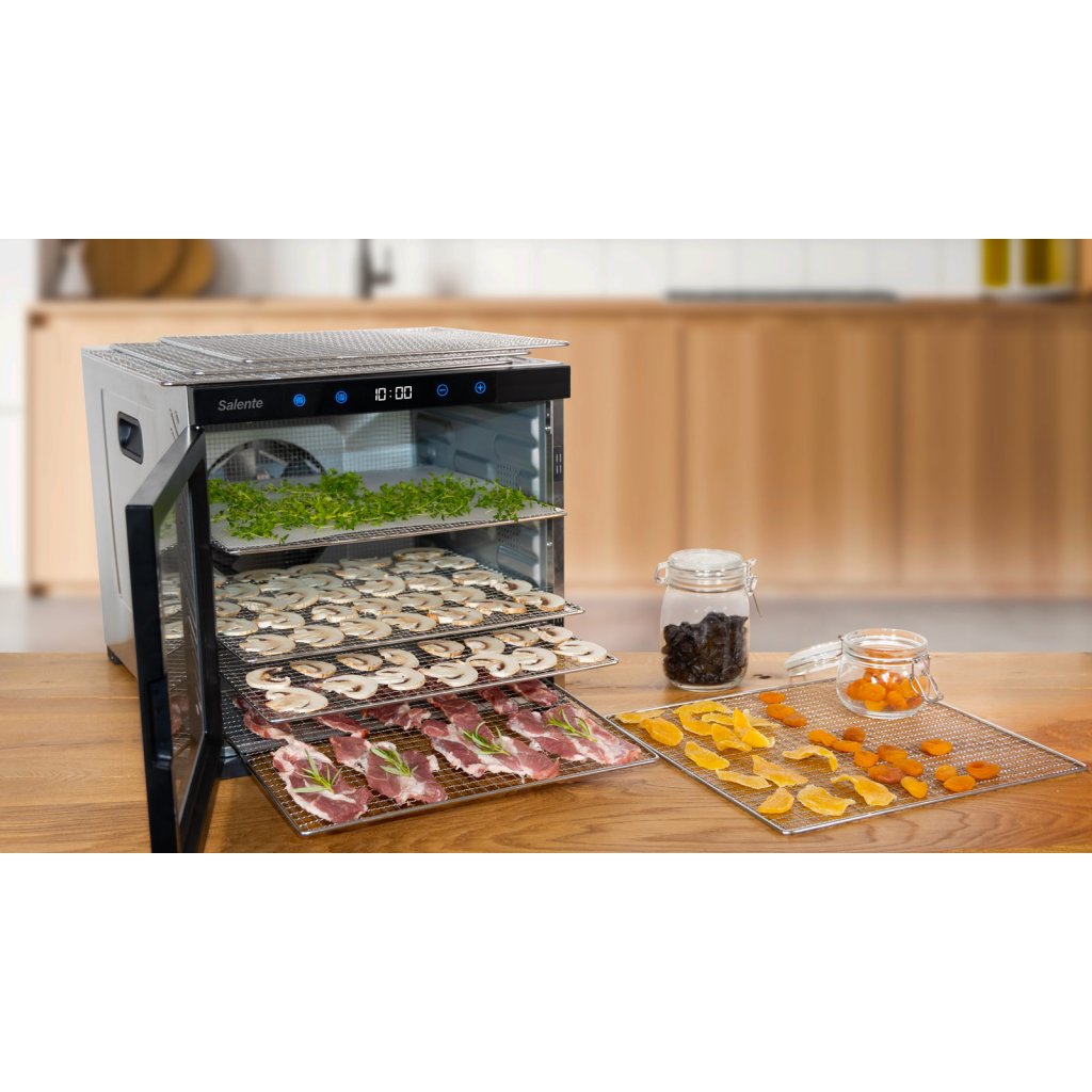 • Celonerezové robustní provedení • Extra velká sušící plata (39,4 × 39,4 cm) • Ideální pro sušení hub, ovoce, zeleniny, bylinek, čaje, masa atp. • Extra výkonný 18 cm ventilátor • Rovnoměrné sušení ve všech patrech • 10 nerezových sušících plat • 10 vložek na plata s jemným síťováním • Beztlačítkový dotykový digitální ovládací panel s displejem