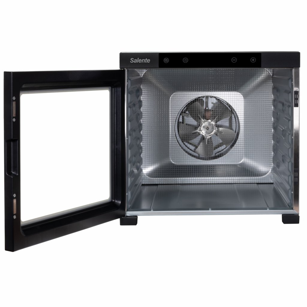 ________________________________________________________________________________________________________________ Celonerezová profesionální sušička Salente QuickDry nabízí rovnoměrné sušení hub, ovoce, zeleniny, bylinek, čaje a dalších surovin s maximálním uživatelským komfortem díky senzorickému dotykovému ovládacímu panelu s digitálním displejem a velmi jednoduchým nastavením teploty i času s možností libovolné změny nastavených hodnot i v průběhu sušení. Teplotu lze nastavit v rozsahu 35-75 °C v krocích po 5 °C, čas lze nastavit v rozsahu 30 min. až 24 hodin v krocích po 30 minutách. Díky použitým materiálům má prodlouženou životnost a velmi snadno se udržuje a čistí.