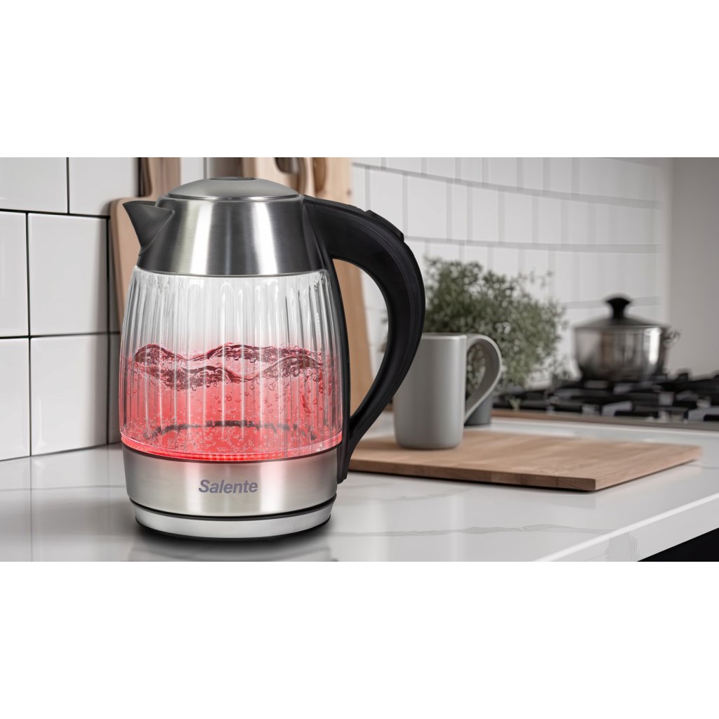 Salente StripeGlass, rychlovarná konvice 1,8 l, nerez/skleněná, červené podsvícení