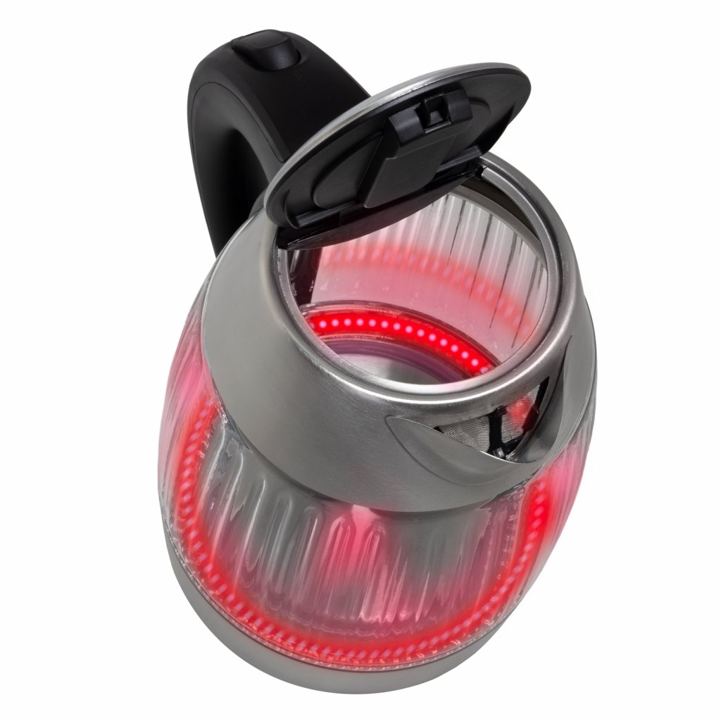 Vybere si úplně každý – k dispozici jsou u tohoto modelu dvě barevné varianty, a to buď s modrým nebo červeným podsvícením. Podsvícení je automaticky aktivováno vždy při zahájení vaření vody a automaticky zhasne po dovaření vody. Podsvícení zajišťují LED diody s dlouhou životností.