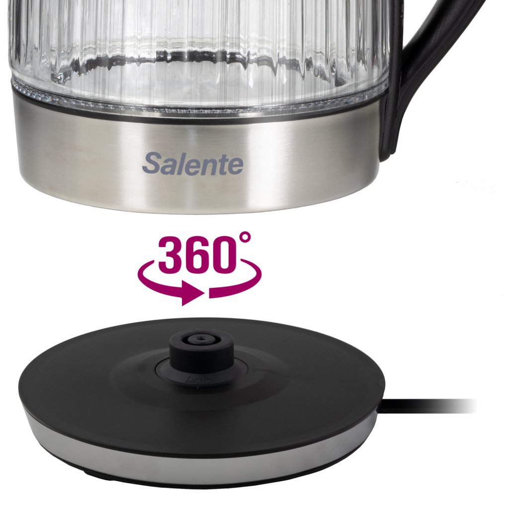 • Objem 1,8 litru • Příkon 2200 W • Tělo ze borosilikátového skla a nerezové oceli • Celoplošné podsvícení (modré nebo červené) • Anti-Calc filtr proti vápenatým usazeninám • Oboustranný ukazatel vodní hladiny • Tlačítko na víku s bezpečnostní pojistkou • Středový 360° konektor s životností 10 milionů zdvihů
