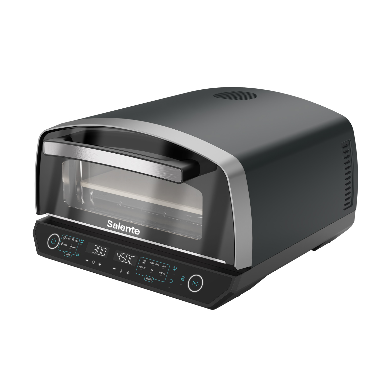 Pizza pec Salente Vulcano není jen mistr na pizzu – díky vestavěné funkci grilu ji využijete po celý rok na nespočet dalších způsobů. Nabízí režimy Broil, Roast, Bake a Grill, takže si snadno připravíte nejen dokonale propečenou pizzu, ale i šťavnaté maso, dozlatova zapečenou zeleninu, křupavé toasty nebo domácí pečivo.