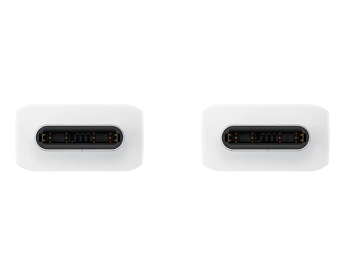 SAMSUNG USB-C kabel (5A, 1.8m) bílý *Sdílení napájení mezi dvěma kompatibilními zařízeními přes USB typu C *Výstupní výkon max. 100 W (20 V, 5 A) *Podporuje napájení až do 100 wattů a superrychlé nabíjení až do 45 wattů *Výměna dat přes USB 2.0 *Délka kabelu: 1,8 m