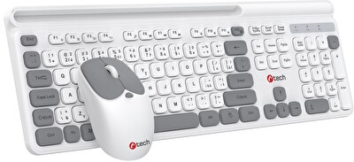 Klávesnice C-TECH Quallis WLKMC-05, bezdrátový combo set s myší, bílá, USB, CZ/SK