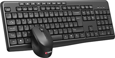Klávesnice C-TECH WLKMC-04, bezdrátový combo set s myší, černý, USB, CZ/SK