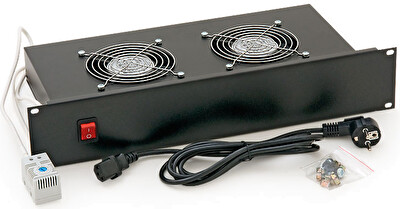 19" horiz.vent.j.2xVent.-220V/46W termost.2U černá