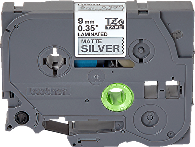 TZE-M921 - černý tisk/matně stříbrný podklad, 9mm