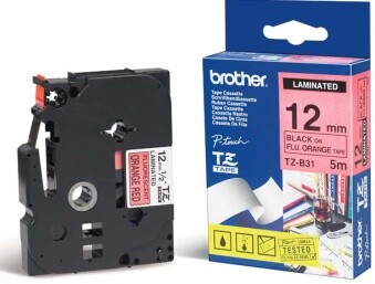 TZE-B31, signální oranžová/černá, 12mm