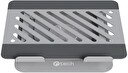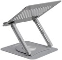 Quallis NTS-200 podporuje notebooky až do velikosti 16" a jeho pevná hliníková konstrukce zajišťuje vysokou odolnost, nosnost a elegantní vzhled. Na rozdíl od běžných stojanů je vybaven otočnou základnou s 360° rotací, což umožňuje plynulé natáčení notebooku bez nutnosti přemisťování celé konstrukce – ideální při prezentacích, sdílení obrazovky nebo střídavé práci více uživatelů.