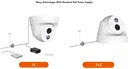 Kamera podporuje PoE napájení pomocí Ethernet portu RJ45, a to dle standartu PoE IEEE 802.3af. Kameru stačí pouze připojit k portu PoE rekordéru nebo PoE switch/injektoru. Také je možné napájení pomocí DC konektoru.
