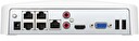 Porty: 4x LAN PoE RJ45 port 10/100 Mb/s pro připojení kamer, 1x LAN RJ45 port 10/100 Mb/s pro připojení k Internetu, 2x RCA zvuk, 1x HDMI, 1x VGA, 2x USB 2.0, 1x Napájecí Jack