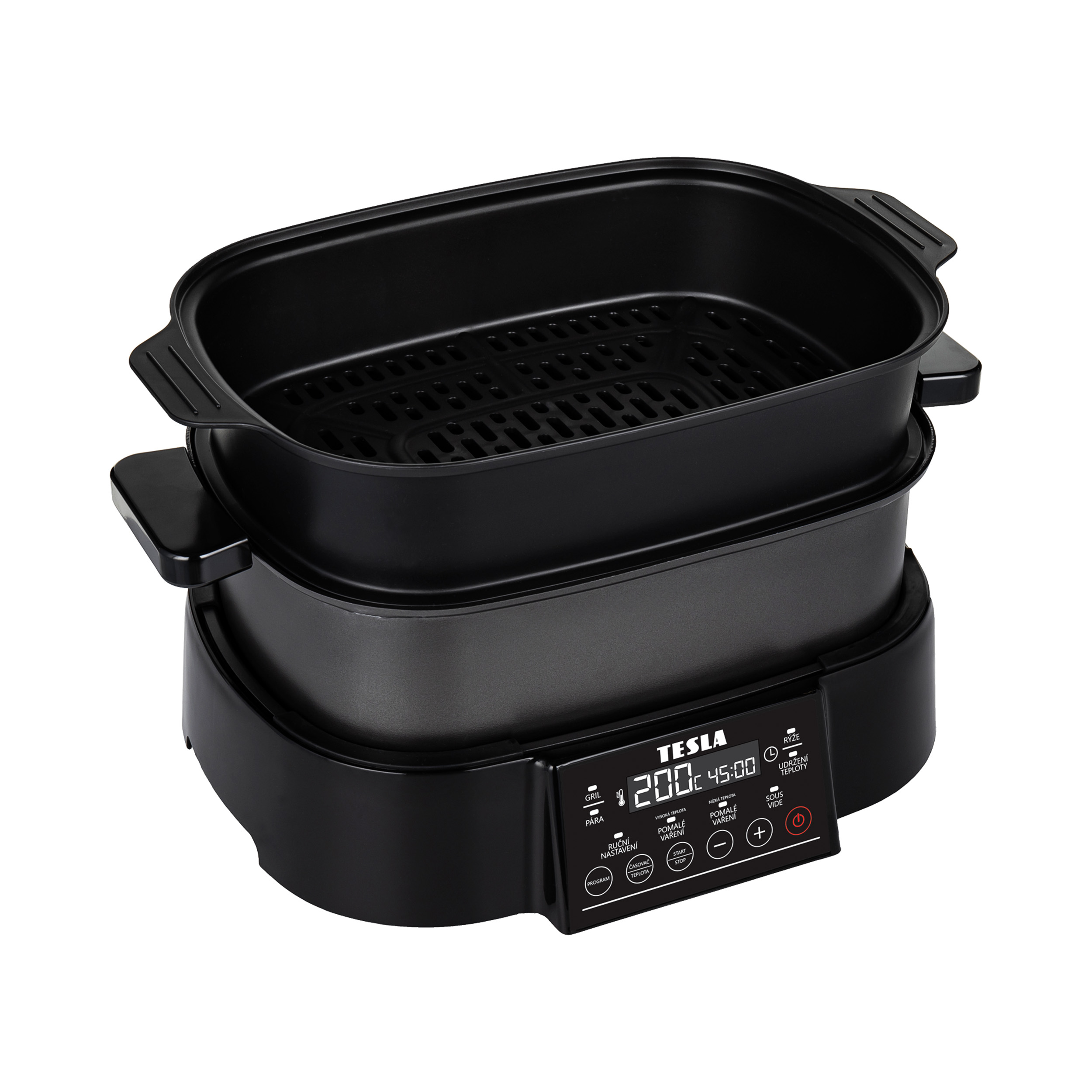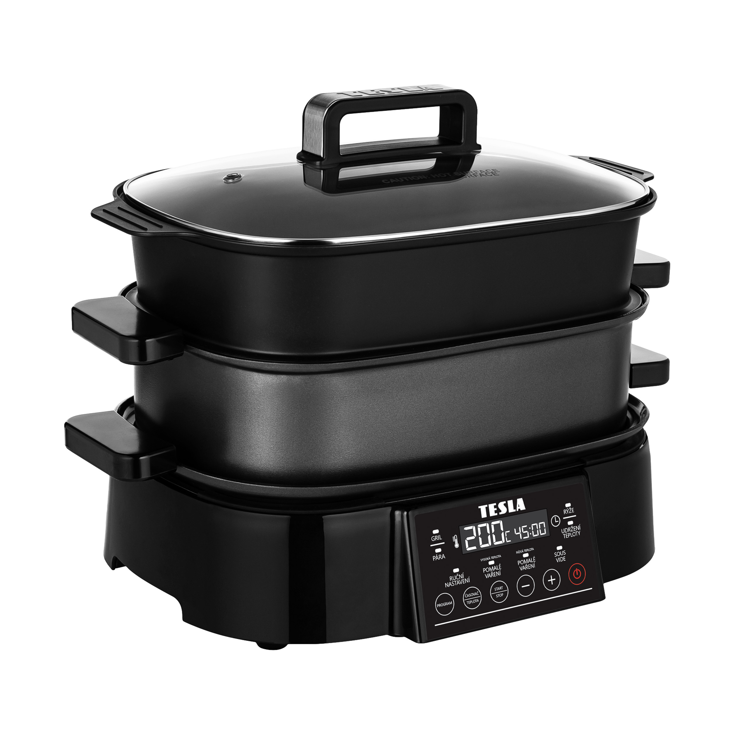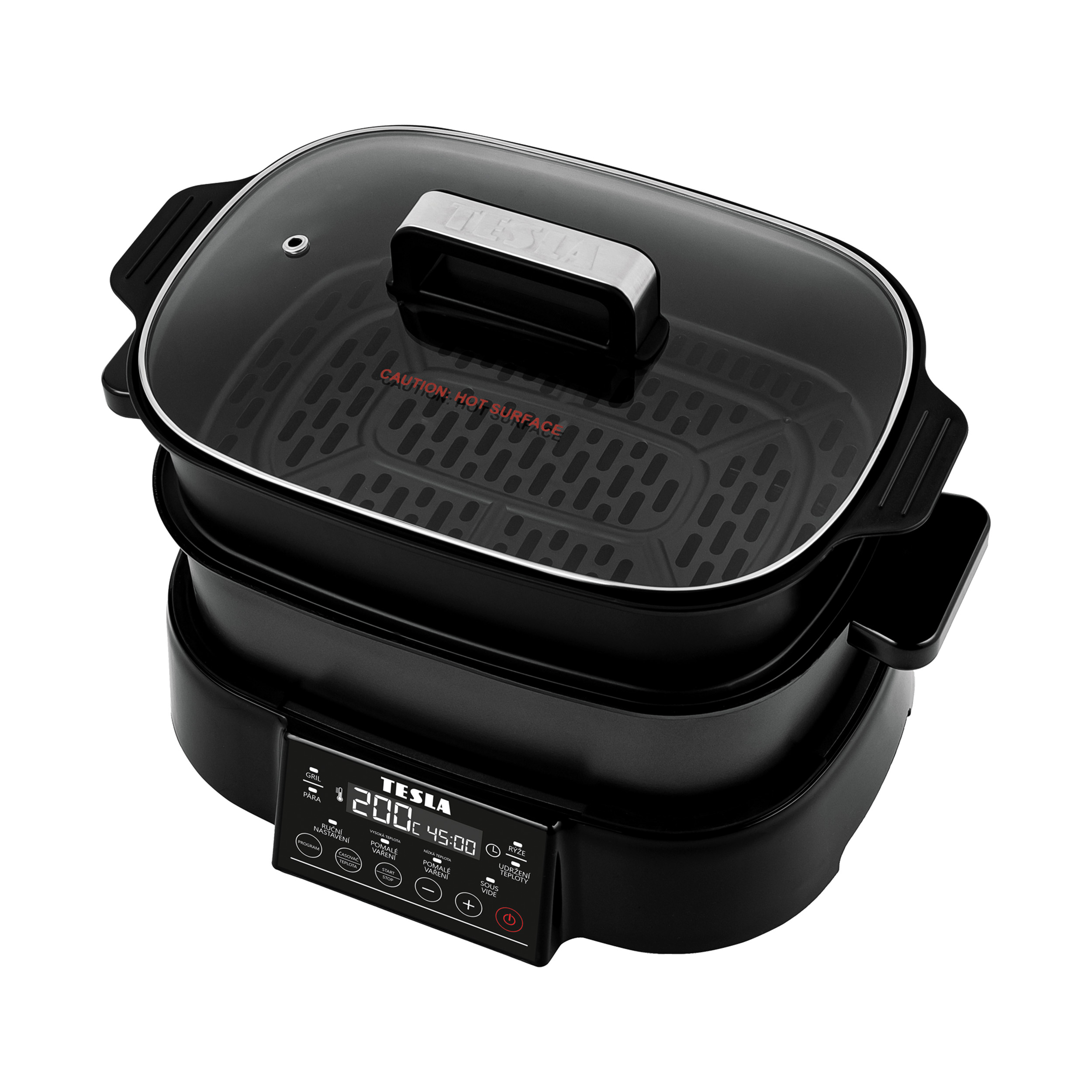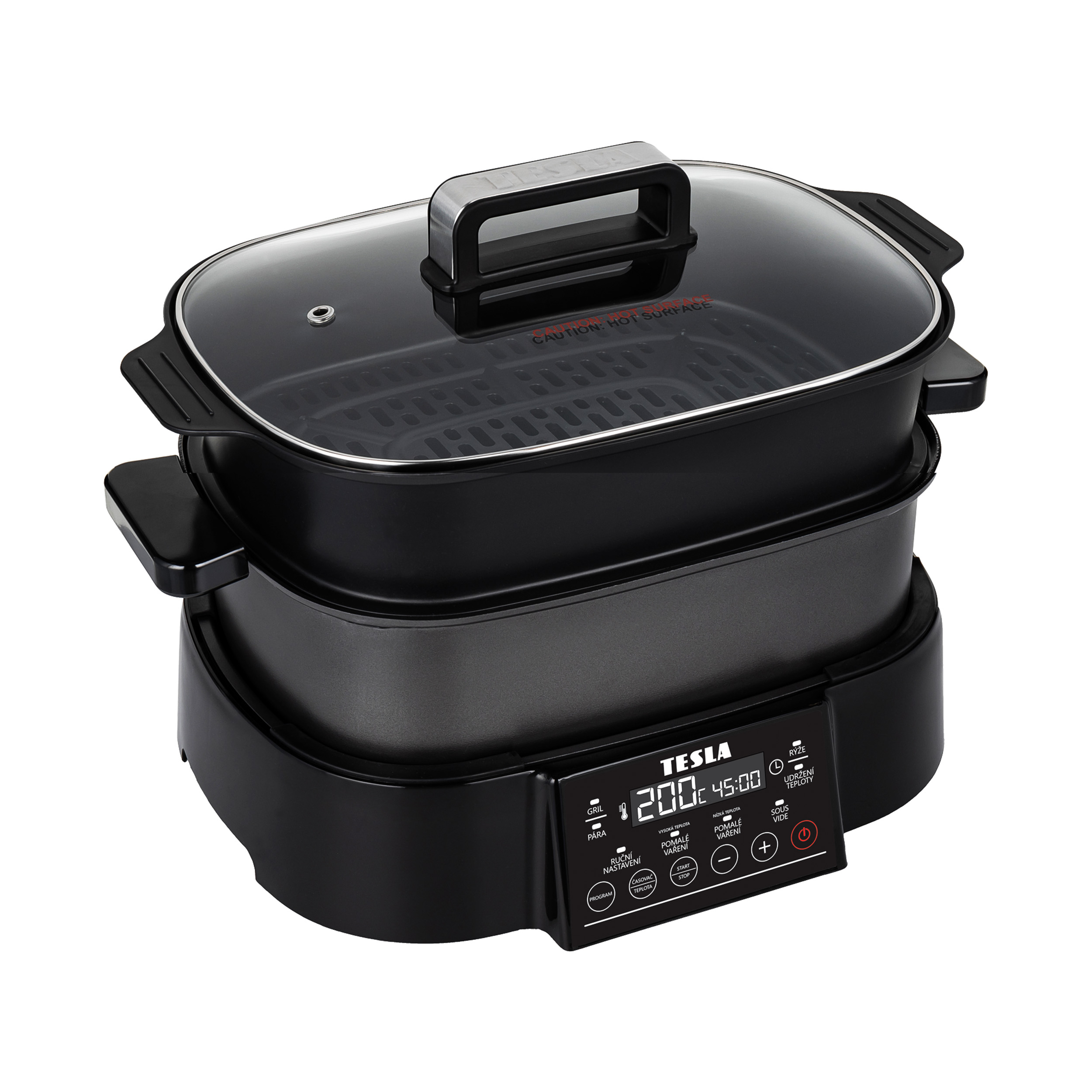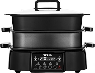 Multifunkční elektrický hrnec TESLA MultiCook M90 Grill umožňuje vařit třemi různými způsoby díky grilovací pánvi nebo varnému a napařovacímu hrnci. S tolika možnostmi si můžete připravit vajíčka a slaninu k snídani nebo palačinky, steaky na večerní rande nebo těstoviny pro celou rodinu.