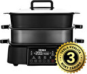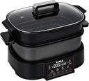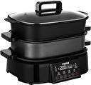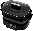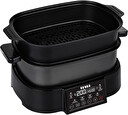 Multifunkční zařízení se skládá z celkem pěti částí - základny, varné nádoby, napařovacího hrnce, grilovací desky a skleněné pokličky. Klasická černá barva s moderním designem zařízení se výborně hodí do každé moderní kuchyně. Skleněná poklička vám umožní kontrolovat průběh přípravy jídla.