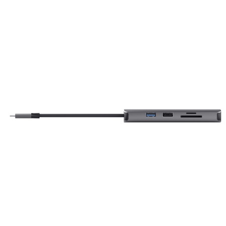 Dalyx 8-in-1 Multiport Adapter - Grey Stylový hliníkový víceportový adaptér pro přidání portů HDMI, síťového portu, čtečky karet, USB-C a USB portů k notebooku pomocí jediného připojení USB-C. Všichni za jednoho a jeden za všechny. Jedno zařízení pro vše, co potřebujete. Přidejte k notebooku nebo tabletu další HDMI, síťový port, čtečku karet SD a micro-SD, 2x USB-A a 2x USB-C porty pomocí jediného portu USB-C s rozbočovačem Dalyx all-in-one. Zjednodušte si nastavení a vytvořte si vlastní pracovní stanici, která funguje přesně tak, jak potřebujete. Počet USB portů: 3 Verze USB: 3.2 gen 1, 2.0 Ethernetový port: Ano Délka hlavního kabelu: 15 cm Hmotnost: 68 g Napájecí zdroj: USB-C Technologie nabíjení: USB PD 3.0 USB-C port: 2 USB-A port: 2 Obsah balení: Trust Dalyx 8-in-1 víceportový adaptér