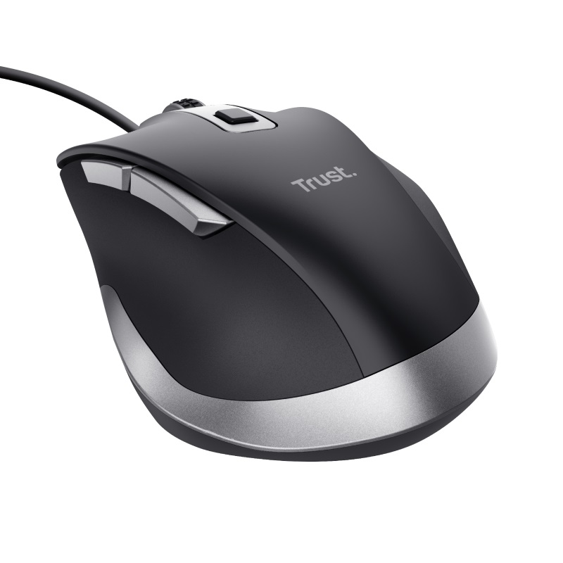 Nedělejte si starosti s bateriemi. Kabelová myš Trust Fyda používá pro vaše pohodlí kabel USB. Zajišťuje stabilní připojení a funguje jen, když je připojena k počítači nebo notebooku.