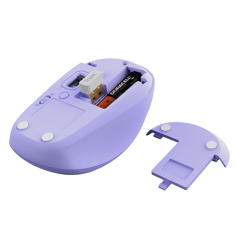 TRUST Yvi+ Multi-Device/Kancelářská/Optická/1 600 DPI/USB+BT/Fialová