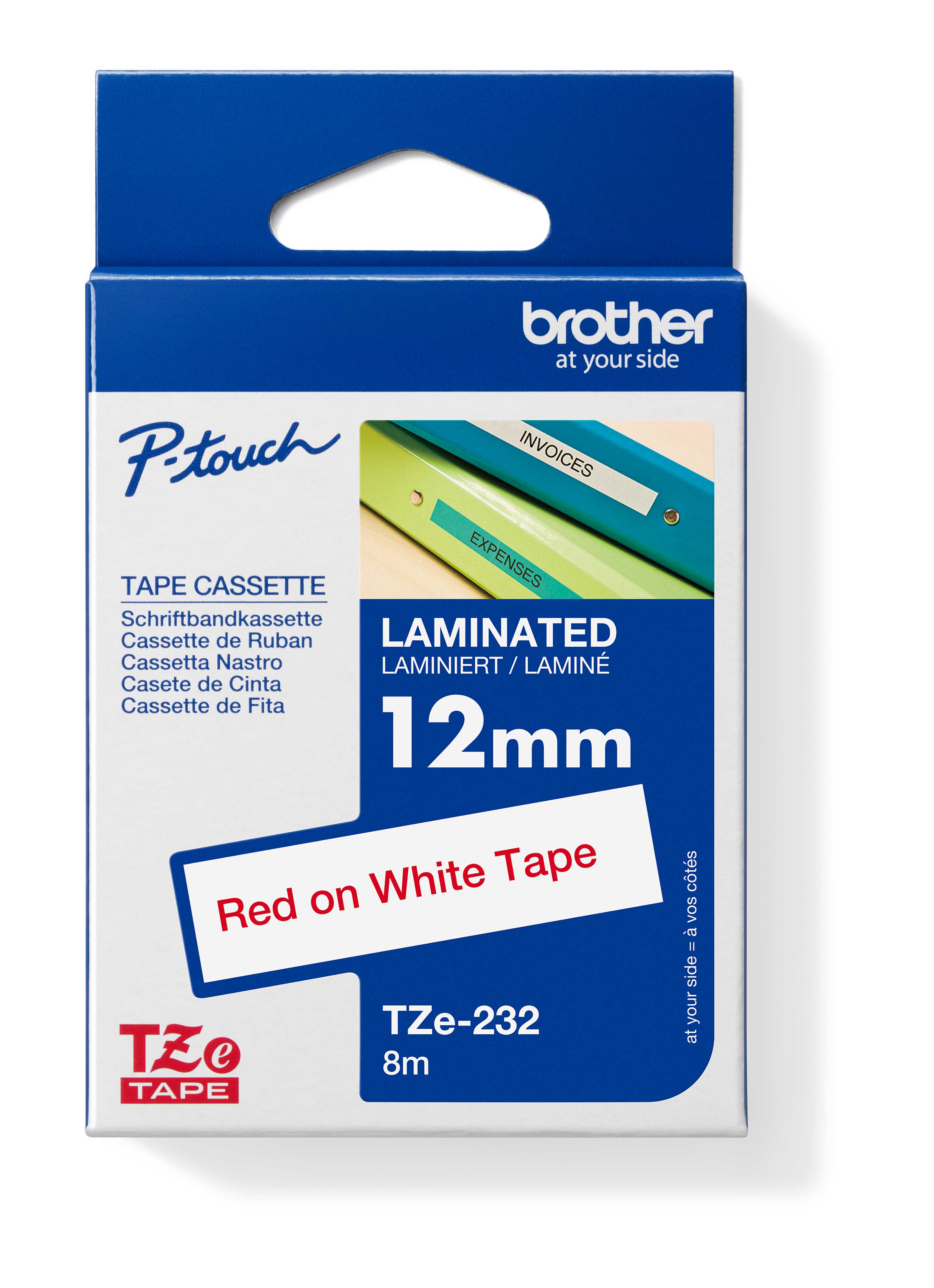 TZE-232, bílá/červená, 12mm