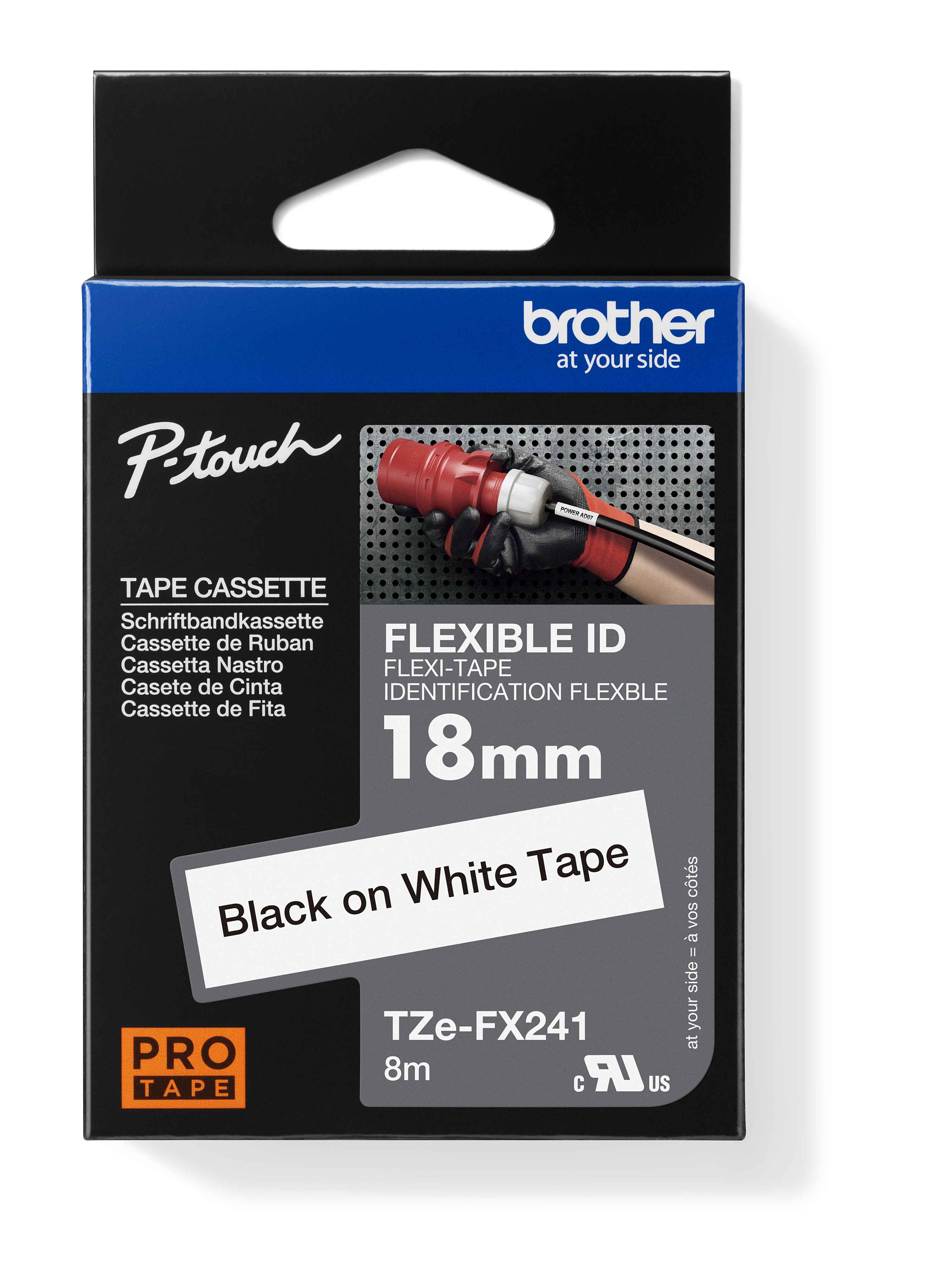 Ideální pro vytváření identifikačních štítků pro kabely, vodiče, PVC trubky nebo jiné válcovité tvary. Speciální lepidlo pásky Brother TZe-FX241 s černým tiskem na bílém podkladu zajišťuje, že vaše důležité štítky budou mít dlouhou životnost. Kompatibilní s tiskárnami štítků P-touch, které mají logo TZ nebo TZe na krytu kazety s páskou.