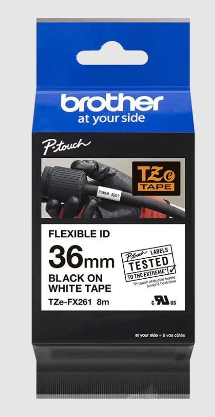 Ideální pro vytváření identifikačních štítků pro kabely, vodiče, PVC trubky nebo jiné válcovité tvary. Speciální lepidlo pásky Brother TZe-FX261 s černým tiskem na bílém podkladu zajišťuje, že vaše důležité štítky budou mít dlouhou životnost. Kompatibilní s tiskárnami štítků P-touch, které mají logo TZ nebo TZe na krytu kazety s páskou.