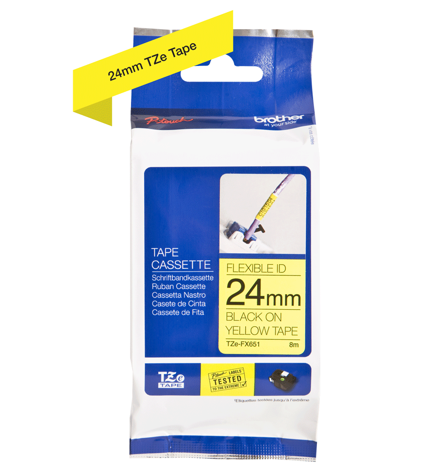 TZe-FX651, černý tisk na žluté, šířka 24 mm