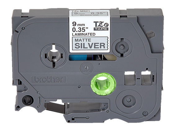 TZE-M921 - černý tisk/matně stříbrný podklad, 9mm