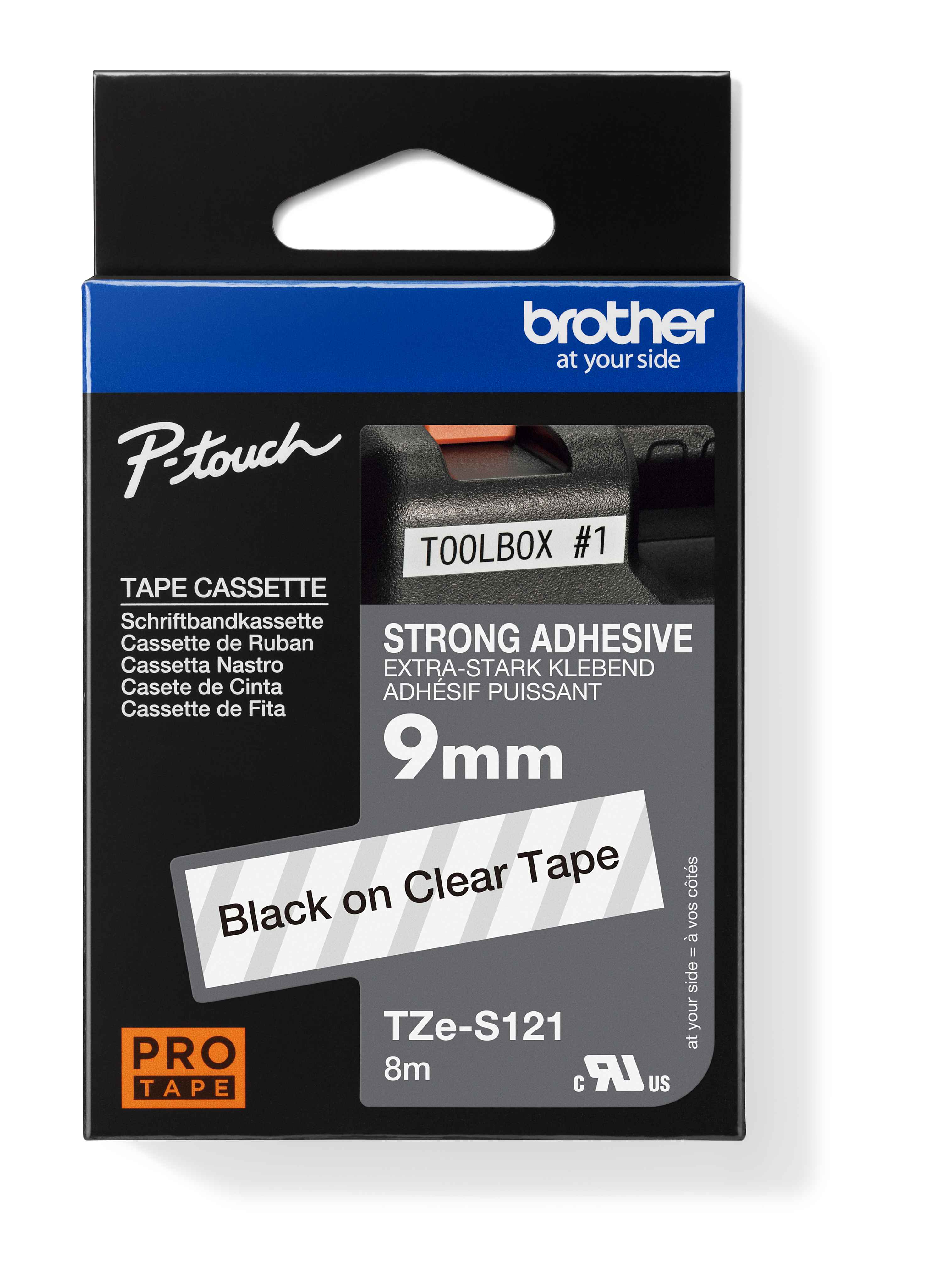 Originální kazeta s laminovanou páskou TZe-S121 kompatibilní s širokou řadou tiskáren Brother P-touch je zvláště všestranná díky své snadno čitelné černé a průsvitné barvě - ideální pro domácnost domácnosti, kancelář a další pracoviště.