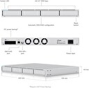 Zařízení je možné do sítě připojit prostřednictvím SFP+ portu nebo 1Gbit ethernetu a namontovat lze do běžného 19" racku, kde zabere výšku 1U.