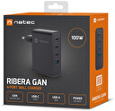 Univerzální USB nabíječka Natec GaN 100W, 3X USB-C, 1X USB-A, Černá