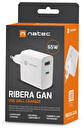 Univerzální USB nabíječka Natec RIBERA GaN 1X USB-A + 1X USB-C 65W, Bílá