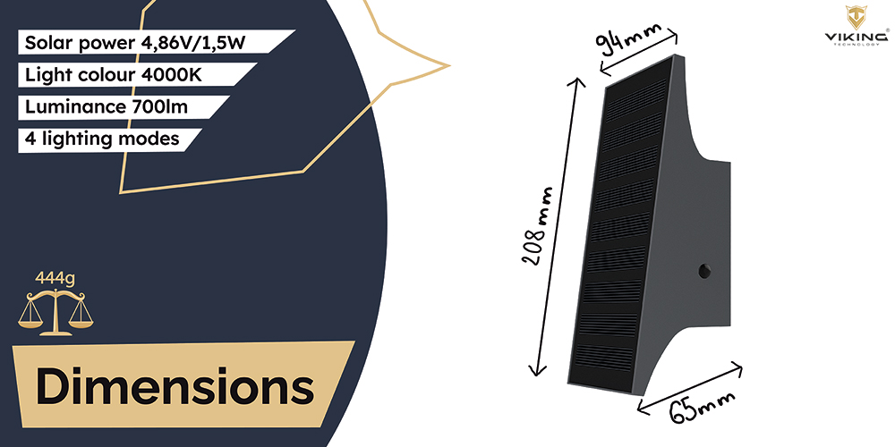Monokrystalický solární panel disponuje výkonem 4,86V/1,5W. Pokud venku panují nevhodné podmínky, světlo Viking SR83 dokáže fungovat až 3 dny.