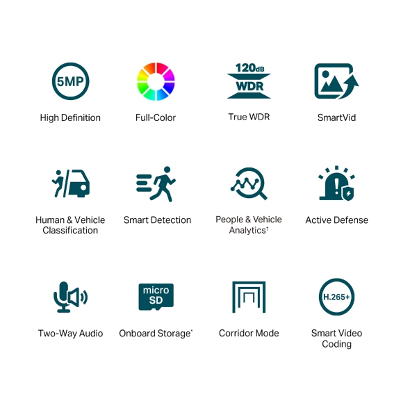 VIGI 5 Mpx vnitřní turret síťová kamera s plnobarevným nočním viděním Funkce