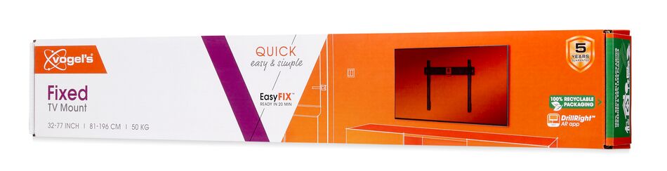 Nástěnné držáky televizorů QUICK se velmi snadno a rychle instalují díky jedinečnému systému EasyFIX™. Televizor můžete na stěnu připevnit ve třech jednoduchých krocích a užívat si jej již během maximálně 20 minut. Součástí balení je vrtací šablona, šrouby a hmoždinky Fischer® DuoPower. Všechny kroky instalace jsou jasně a stručně vysvětleny v přiloženém rychlém návodu k instalaci. Podrobný návod k použití si můžete prohlédnout také online nebo se podívat na instalační video. S bezplatnou aplikací DrillRight™ AR si snadno vyznačíte první vrtací otvor na stěně. Pak stačí jen přiložit vrtací šablonu. Praktické také je, že váš nástěnný držák televizoru QUICK Fixed má zabudovanou vodováhu. Montáž televizoru do perfektní roviny je proto velmi snadná.