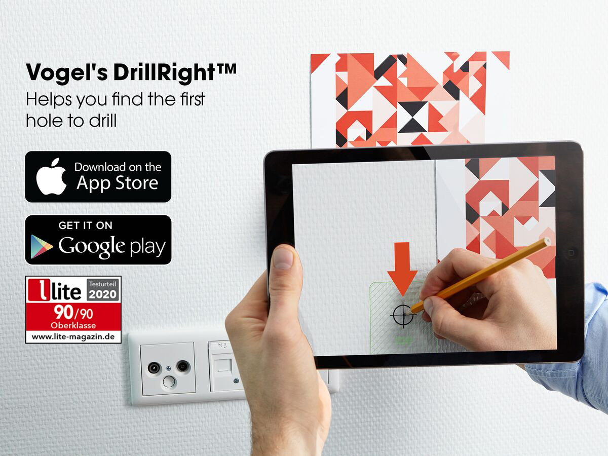 • Snadná instalace s aplikací DrillRight™ AR App - vyznačení všech otvorů pro montáž držáku v požadované poloze TV na stěně