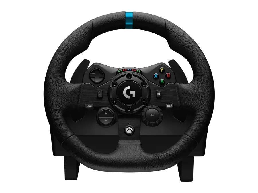 Logitech G923 TRUEFORCE Sim Racing Wheel * ovládací prvky pro Xbox Series X|S, Xbox One jsou integrovány přímo do volantu * volant z ručně šité kůže * integrované barevné indikátory LED označují rozsah otáček v podporovaných hrách * brzdový systém * pedály z válcované oceli Volant * Rotace: 900° od dorazu k dorazu * snímač otáčení fungující na principu Hallova efektu * dvoumotorová zpětná vazba s TRUEFORCE * ochrana proti přehřátí Rozměry: 270x260x278mm Hmotnost bez kabelů: 2,25kg Pedály * nelineární brzdový pedál * patentovaný úchytný systém na koberec * zdrsnělá opěrka pro paty * automatická kalibrace Rozměry: 167x428,5x311mm Hmotnost bez kabelů: 3,1kg Systémové požadavky: * hra podporující závodní volant se zpětnou vazbou Logitech * systém Xbox Series X|S nebo Xbox One nebo * Windows® 11/10, 150MB volného místa na pevném disku, volný port USB 2.0 Obsah balení: * volant * pedály * zdroj napájení * uživatelská dokumentace